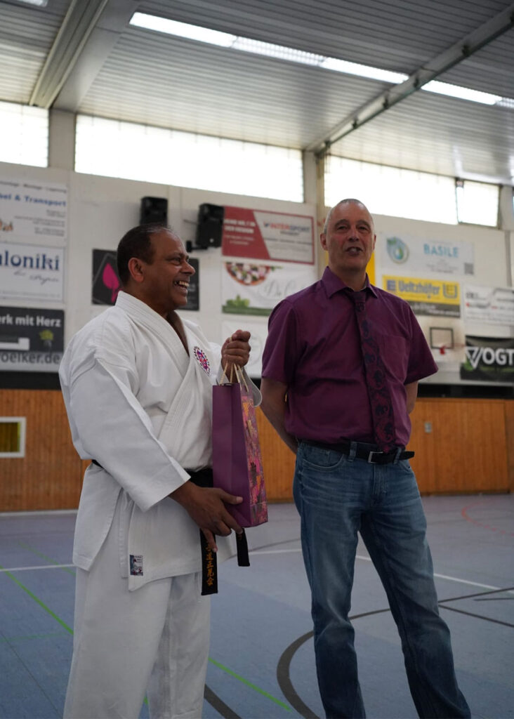 Nach einer kurzen Begrüßung durch Shihan Athula Minithanthri, den Stilrichtungsreferenten des Karateverbands Baden-Württemberg (KVBW), begann der Karatetag. Gemeinsam mit Sensei Joachim Wursthorn eröffnete er nach einer kurzen Aufwärmphase durch Philipp Klemm die Kihon-Einheit. Diese befasste sich mit den Kihon-Techniken des Shito-Ryu, um die Fertigkeiten der Teilnehmenden zu verfeinern und sie auf die spätere Kata-Einheit vorzubereiten.