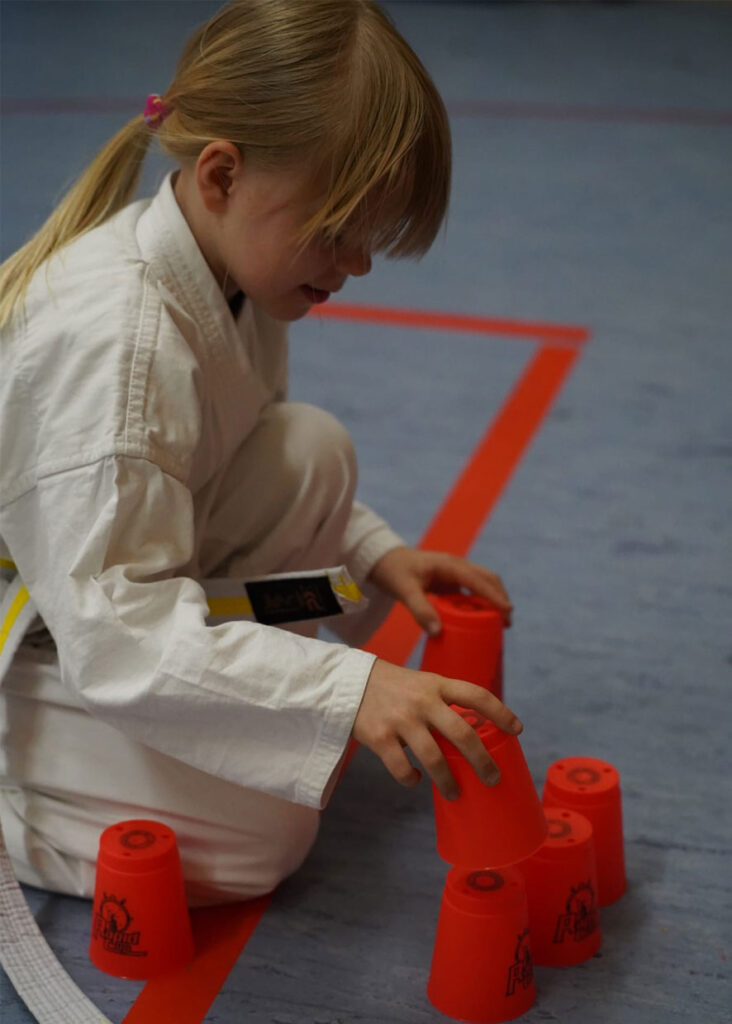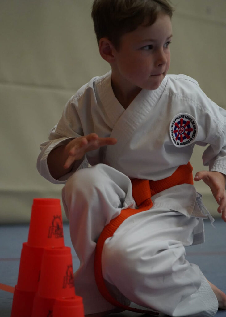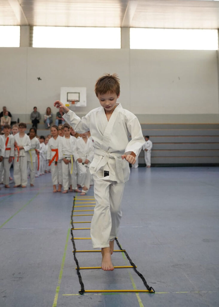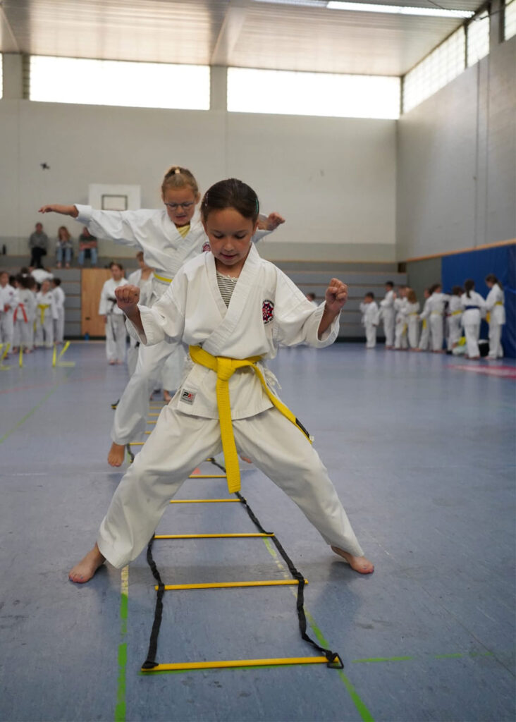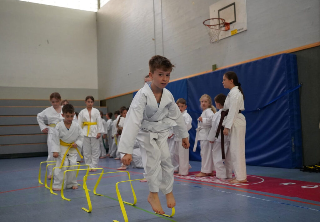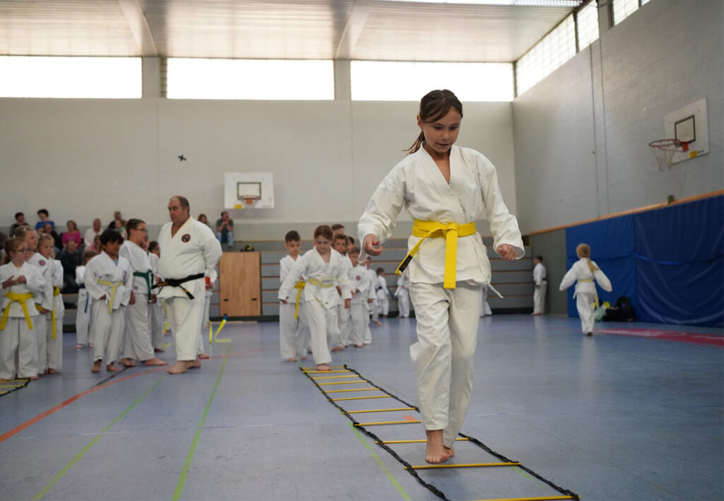 Für die jungen Karateka gab es eine speziell konzipierte Trainingseinheit, die gezielt Koordination und motorische Fähigkeiten förderte. Unter der fachkundigen Leitung von Oxana Traiber, der Stilrichtungsreferentin des Bayerischen Karate Bundes (BKB), konnten die Kinder neue Bewegungsabläufe auf spielerische Weise erlernen. Währenddessen beschäftigten sich die Jugendlichen und Erwachsenen in einem anderen Teil der Halle eingehend mit der Kata „Oyadomari no Bassai“ und deren Bunkai, um ein tiefes Verständnis für die praktische Anwendung der Techniken zu gewinnen.