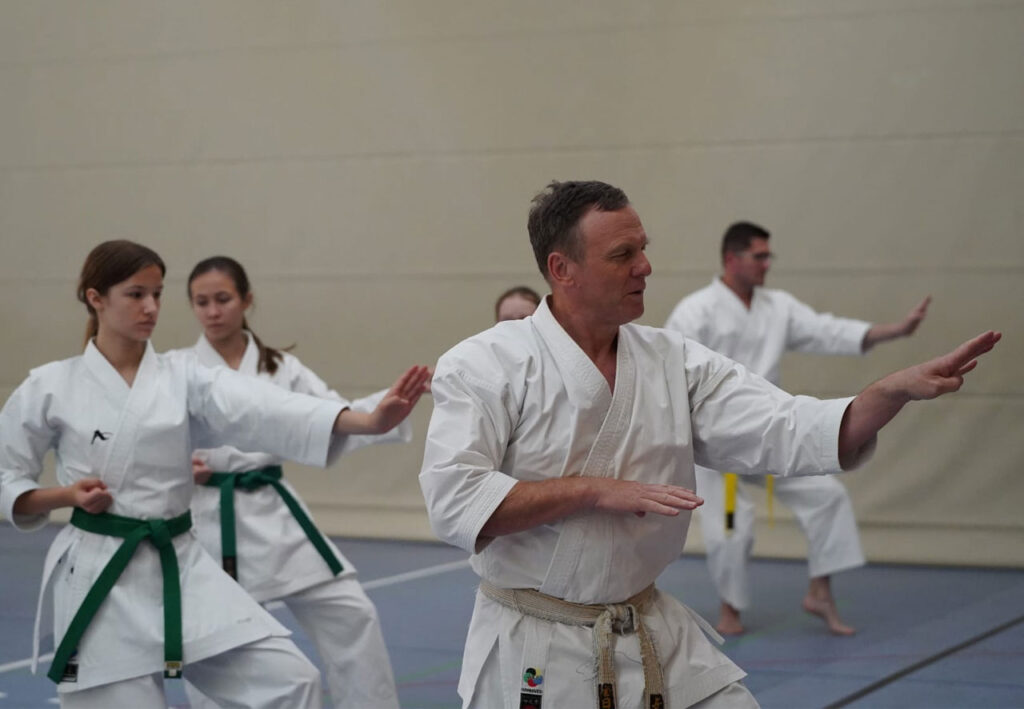 Nach einer kurzen Begrüßung durch Shihan Athula Minithanthri, den Stilrichtungsreferenten des Karateverbands Baden-Württemberg (KVBW), begann der Karatetag. Gemeinsam mit Sensei Joachim Wursthorn eröffnete er nach einer kurzen Aufwärmphase durch Philipp Klemm die Kihon-Einheit. Diese befasste sich mit den Kihon-Techniken des Shito-Ryu, um die Fertigkeiten der Teilnehmenden zu verfeinern und sie auf die spätere Kata-Einheit vorzubereiten.