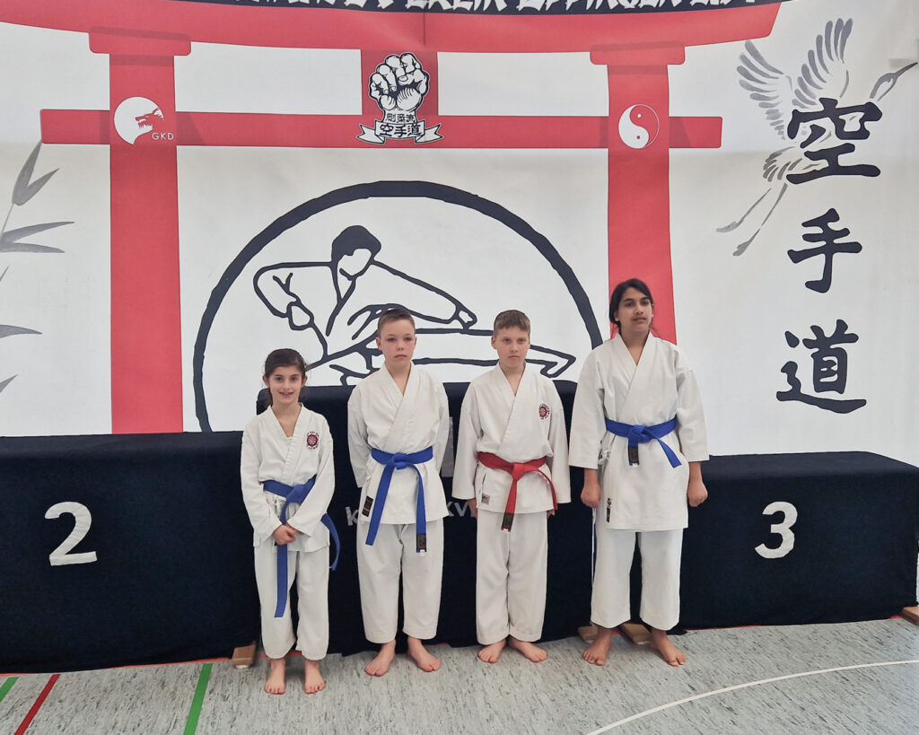 On Saturday, 22 April 2023, the KVBW Regio Cup North was held at the Hardwaldhalle in Eppingen. The coaching team, led by Shihan Athula, was delighted that children from the Dhammika Karate-do dojos in Abstatt and Ditzingen took part in this junior tournament, organised by the Baden-Württemberg Karate Association (KVBW). The team was very pleased with the performances, especially considering that some of the children had only recently started practising karate. Ultimately, they secured five podium places!